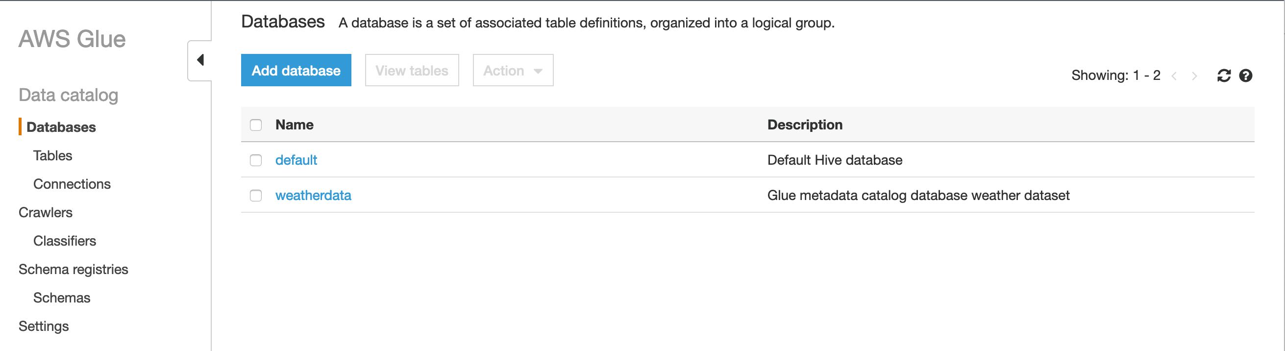 This completes my demo of using Glue to catalog and process the S3 data lake populated from the worldweatheronline.com API. In the next section I briefly cover using AWS Athena to query these two datasets.